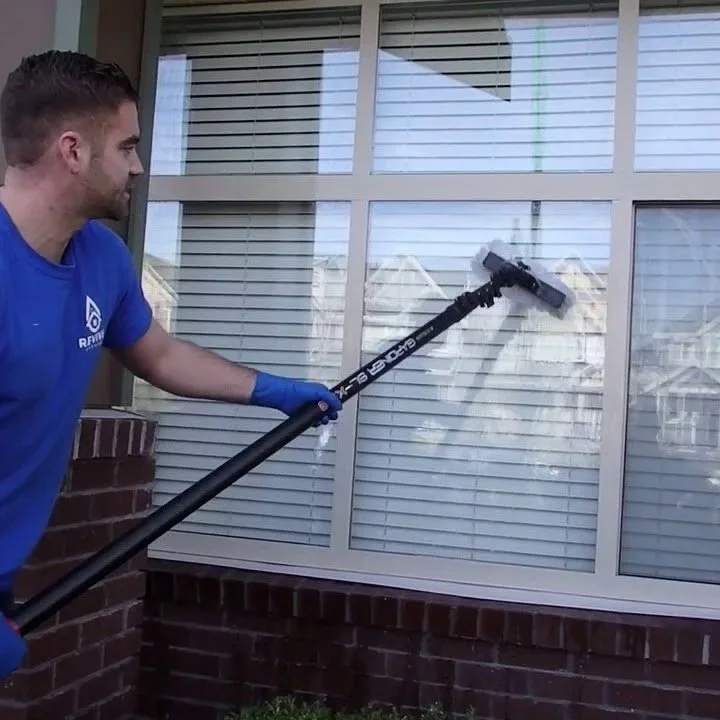 Ground-level storefront glass and low-rise exterior windows. One-time or recurring routes.